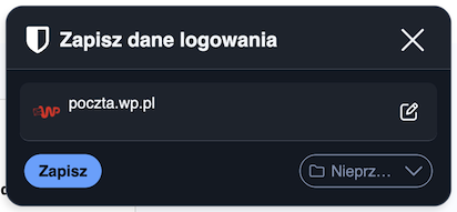 - Powinno wyskoczyć okienko Bitwarden z pytaniem, czy zapisać hasło – kliknij „Zapisz”.