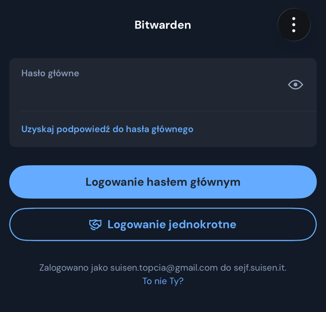 - Obowiązuje zasada „zero‑knowledge”: nawet administrator serwera (czyli ja) nie zna Twojego hasła głównego ani zawartości Twojego sejfu. Czyli jak stracisz dostęp do swojego sejfu nikt nie pomoże i dane są utracone. Upierdliwe, ale na tym polegają menadżery haseł - ma być bezpiecznie.