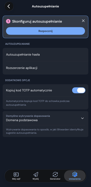 Włączenie tej opcji pomoże taż zapisywać automatycznie hasła w naszym sejfie, aby nie wpisywać ich nie wiadomo ile razy ręcznie (uff!)
