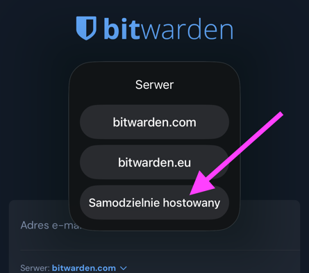 a potem opcję na samym dole Serwer: / "samodzielnie hostowany" lub „Self‑hosted”
